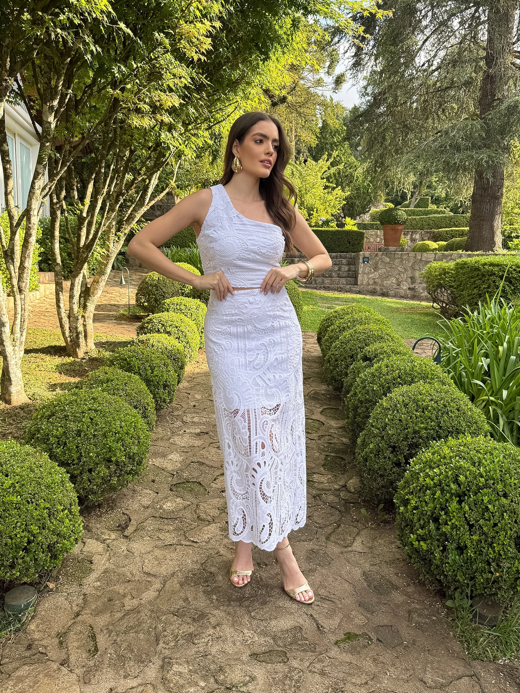 Conjunto em Laise, composto por blusa ombro único e saia longa com forro médio. ar uma pequena variação de cor, considerando a calibragem de cor de cada monitor/celular.Feito em laise trabalhada, um tecido leve, fresco e super sofisticado, conhecido pelos recortes vazados que criam textura e elegância. A laise é perfeita para dias quentes por ser respirável e confortável, além de trazer um visual romântico e ao mesmo tempo moderno.