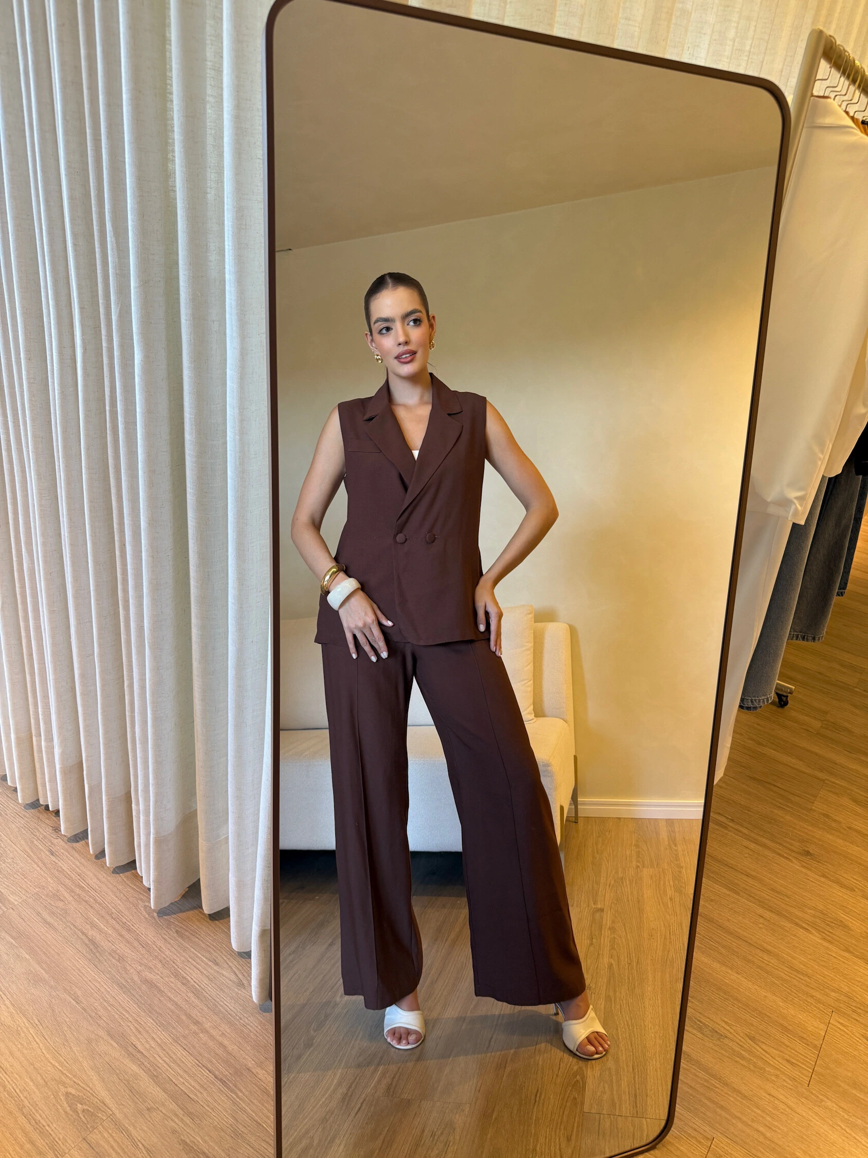 Conjunto Mariane em alfaiataria que transita com facilidade do dia a dia ao trabalho. As peças podem ser usadas juntas ou separadamente, criando diversas combinações no seu guarda-roupa. Acompanha a faixa, podendo ser usado com ou sem ela, valorizando a silhueta de diferentes formas. Uma proposta prática, sofisticada e atemporal.