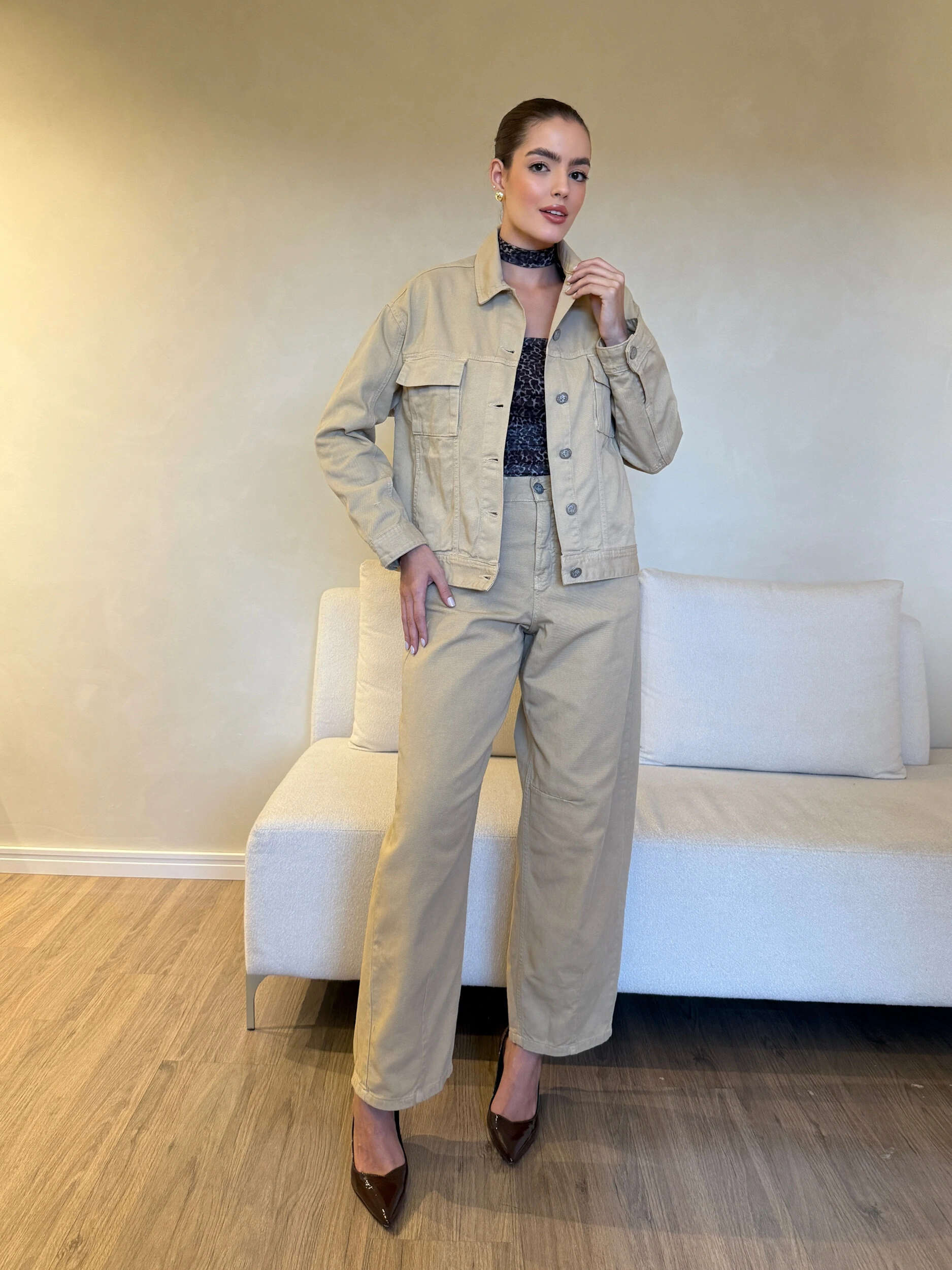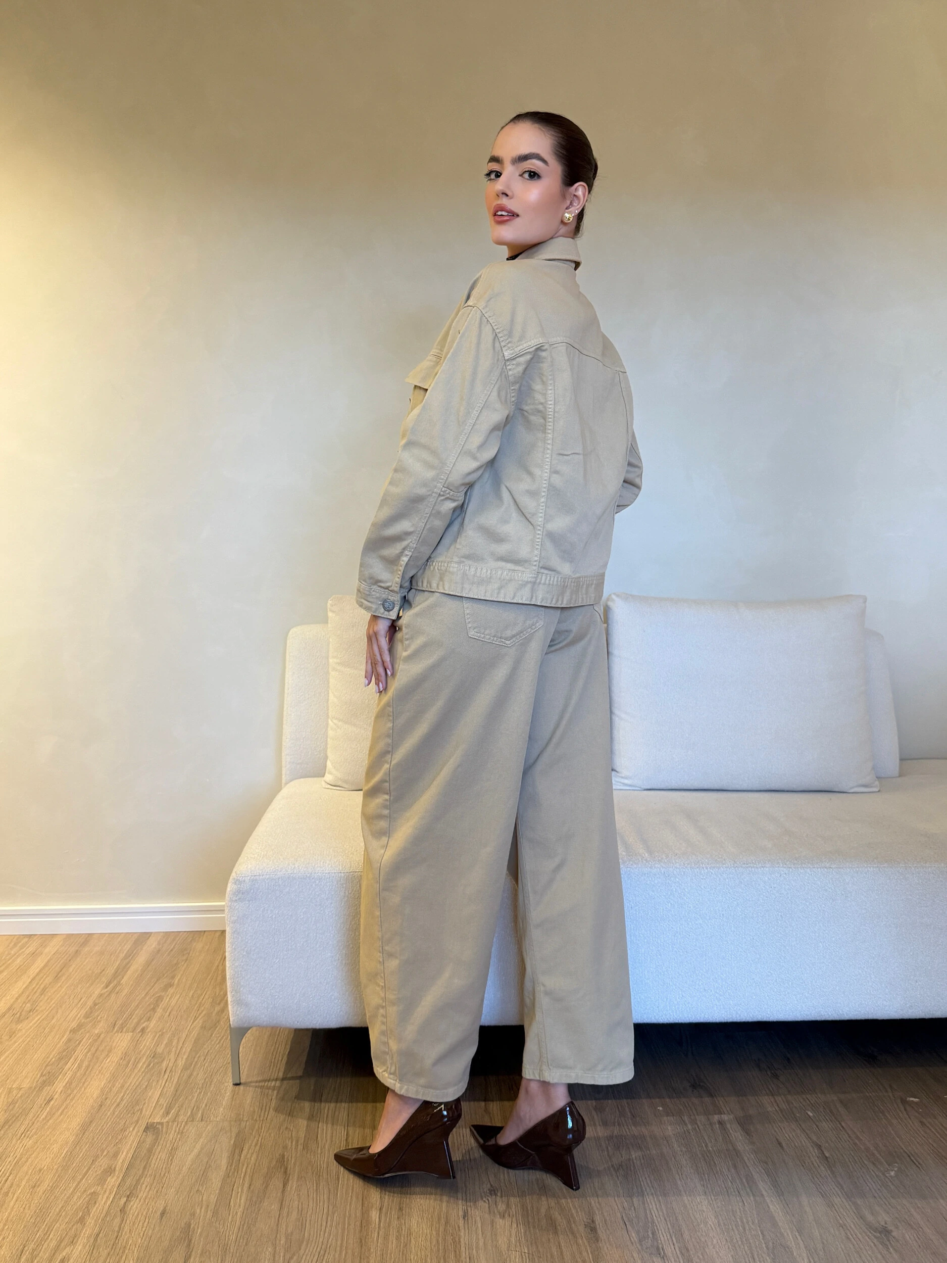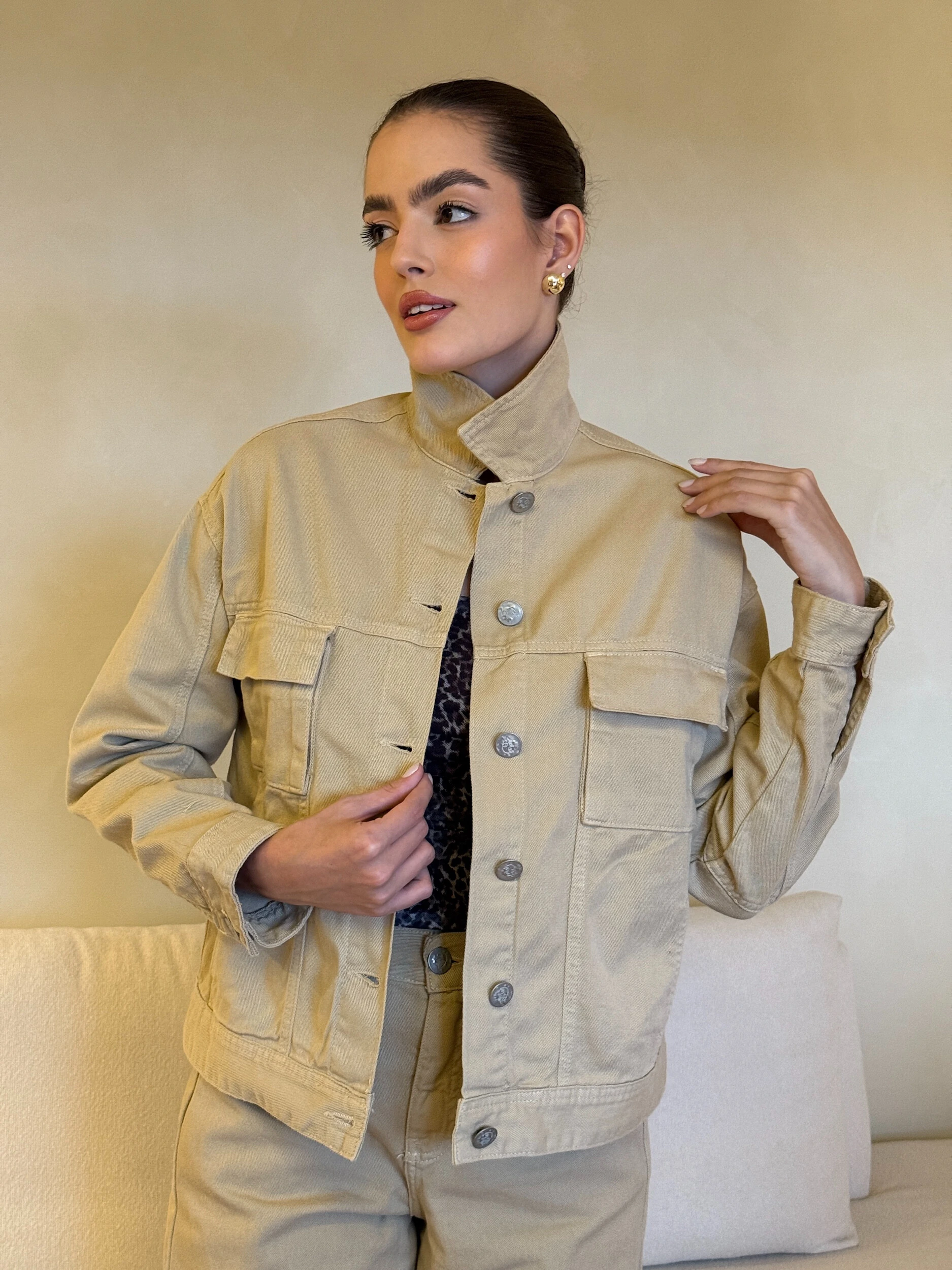 Jaqueta Micaela com modelagem moderna e acabamento impecável, perfeita para compor produções sofisticadas e atuais. Você pode usar com a gola tradicional ou subir, criando uma proposta de gola alta que transforma completamente o look.