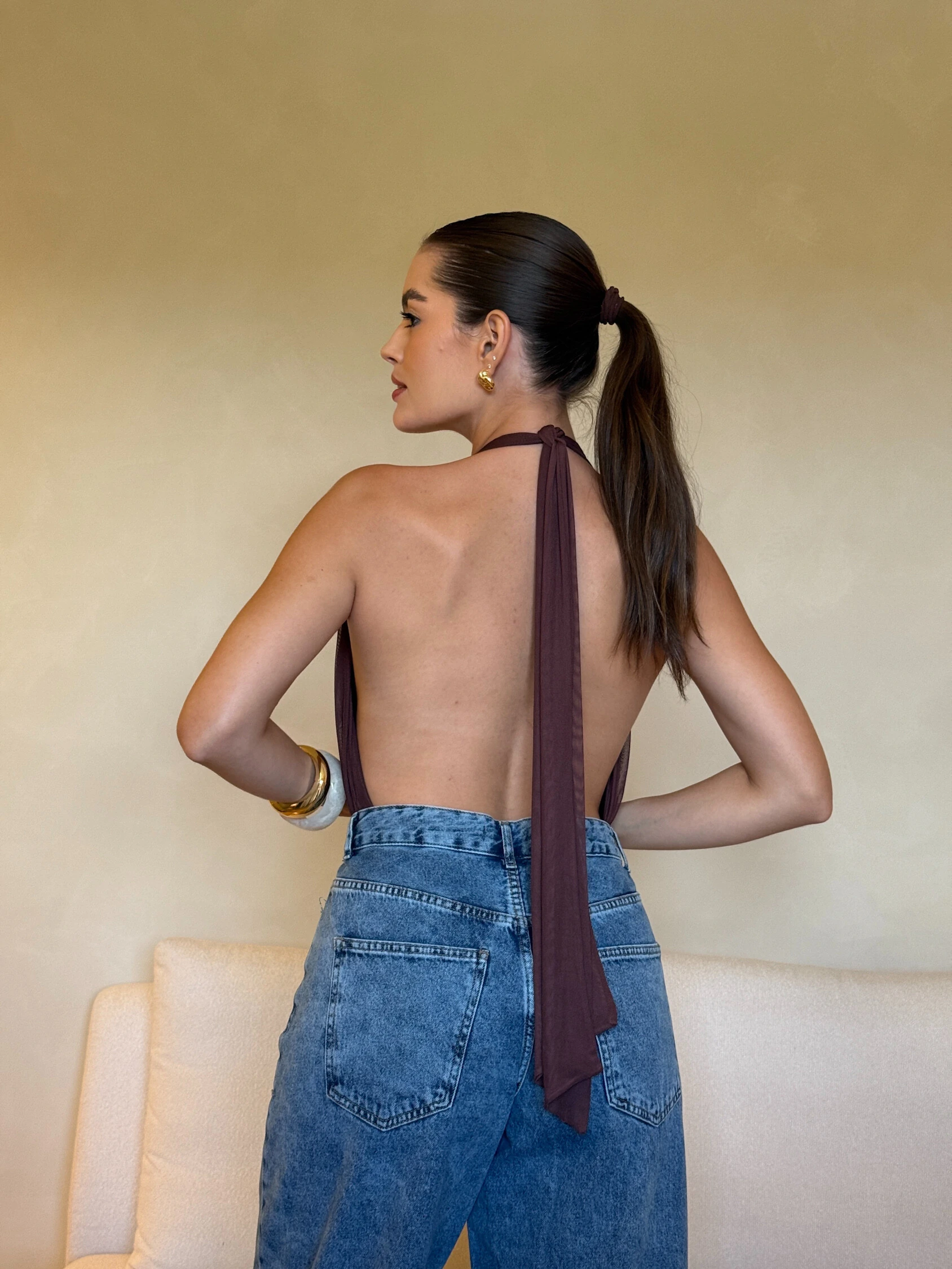 Body Aline confeccionado em tule, totalmente forrado, que une conforto e um caimento impecável. Super versátil, pode ser amarrado de diversas formas, permitindo criar amarrações estilos conforme a sua criatividade. Não fica sobrando no busto e tem fechamento por botões na parte inferior.